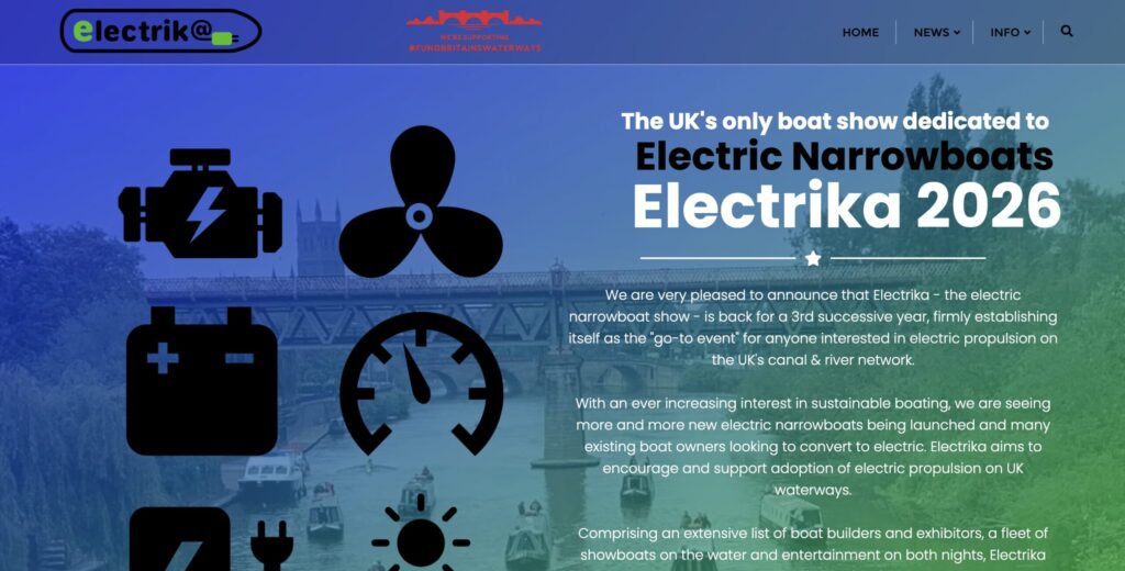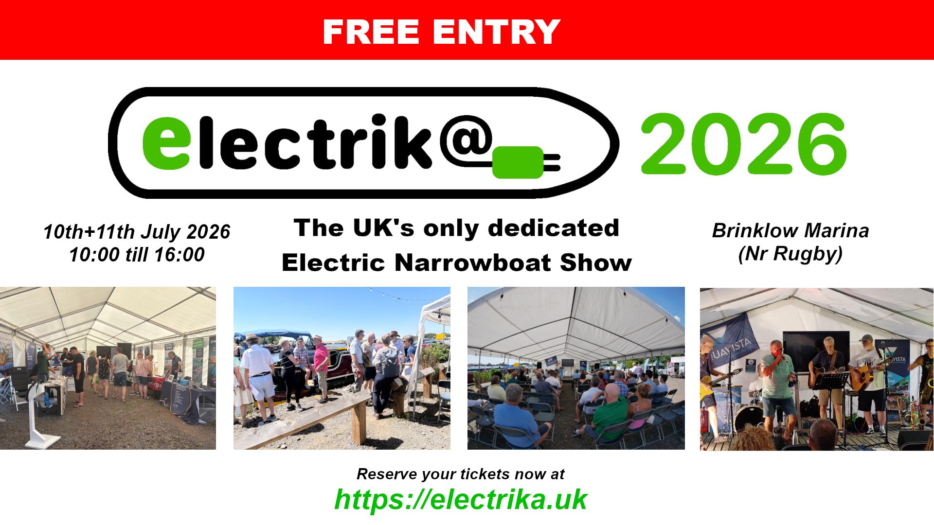 This is the third year of Electrika, the UK’s only dedicated boat show for electric narrowboats, that we organise in our spare time. Originally the brainchild of Ortomarine, and in association with Aqua Vista Watersides and Marinas who have kindly allowed us to host it at Brinklow “the marina of dreams” since its inception. In fact, if it was not for the expert team at Brinklow with their enthusiasm and dedication – Electrika would never have got off the ground.