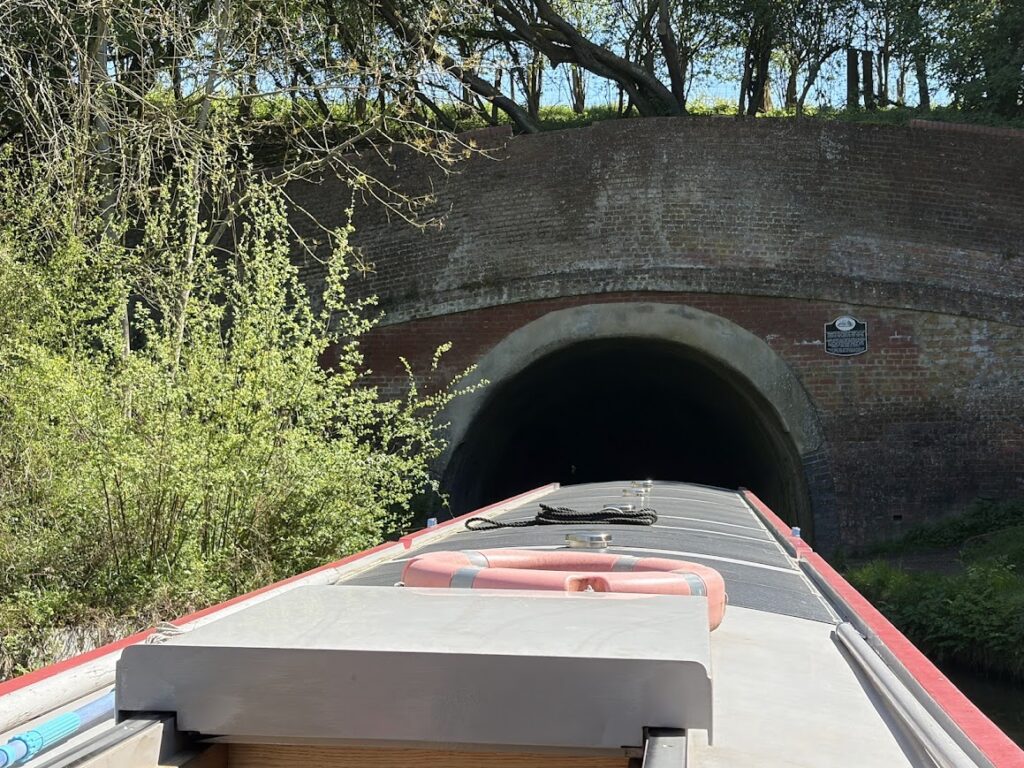 Braunston Tunnel is 2,042 yards (1,867 m) long. It was opened in 1796, has no towpath and is 16 ft (4.8 metres) wide, allowing room for boats to pass through both ways. Occasionally, normal traffic is stopped so that a widebeam can make its way up to Braunston and points North.