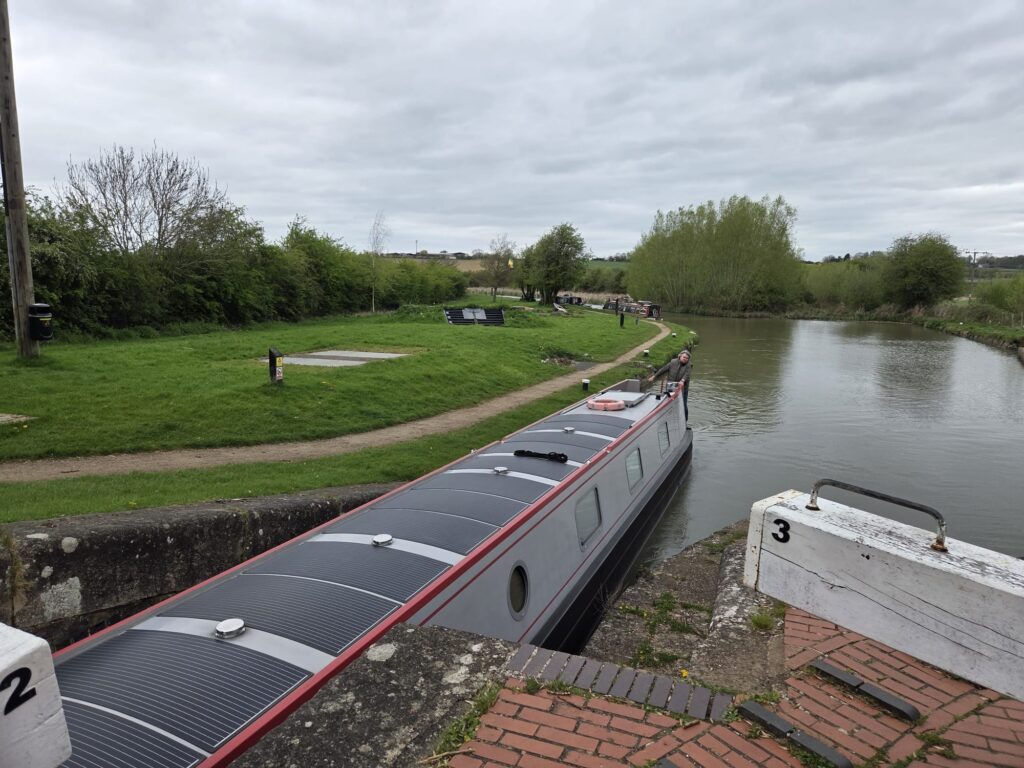 We left the locks and continued on our way along towards Crick and beyond. I was secretly hoping that a spot that we had stayed on for a few days the last time we had come up here, in 2022, would be ours to nab. Unlucky me! Someone already there, dagnammit! So we soldiered on – but not very far. As we tied up I noted that the SOC was 98%. All that manoeuvring in and out of locks and only 2% of our battery used. That’ll be the solar – we are heading towards the peak period for solar, which is June in the UK, and have already had a just-under-10KWh day.